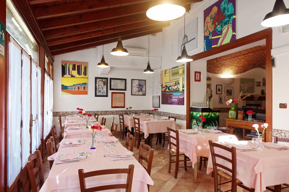 La Trattoria può ospitare fino a 100 persone suddivise nel verdeggiante Salone da 50 posti, un'intima Veranda da 40 posti e la romantica SALETTA da 10 posti dominata da antiche volte in pietra cotta dove in inverno viene inoltre acceso il camino.